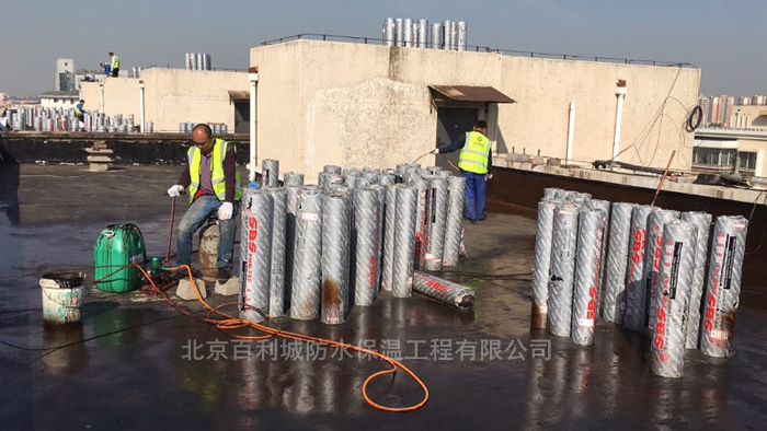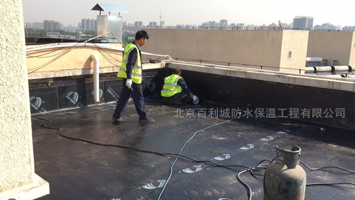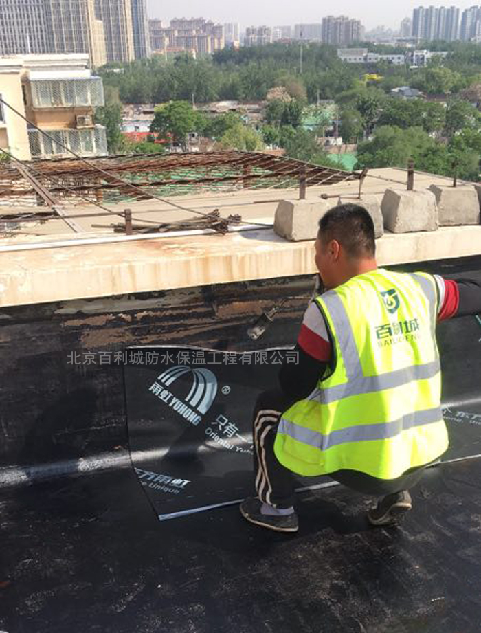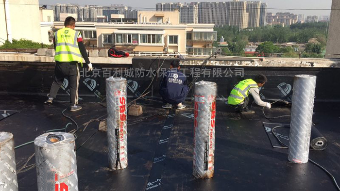 北京小井润园小区屋面防水维修工程,采用东方雨虹防水卷材,施工面积约3768平方米