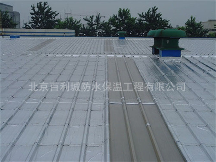 中国排水灌溉中心金属屋面渗漏水,采用纯铝箔自粘卷材施工,施工面积约6700平方米。