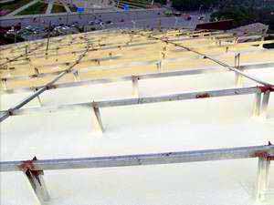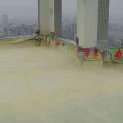 采用高压无气喷涂机现场直接发泡成型工艺,使屋面防水保温一体化,形成的防水保温层连续无接缝,具有保温效果优异、粘接性能好、强度高、抗渗透性强和耐老化性能优异等特点。