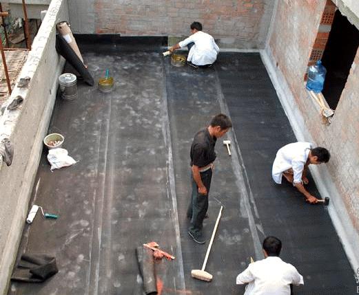 ③刮油法:是将沥青胶浇在基层上后,用厚5~10mm的胶皮刮板刮开沥青胶铺贴;