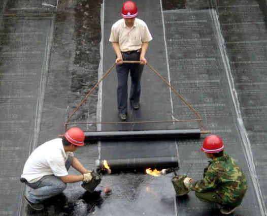 热溶法一般在涂刷基层处理剂8h后进行,火焰加热器的喷嘴距卷材面的距离约0.5m左右,与基层呈45~600角。