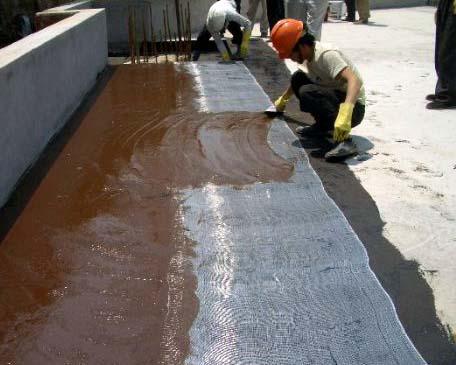 ②刷油法:是用毛刷将沥青胶在基层上刷开,刷油长度以300~500mm为宜,出油边不应大于50mm,然后快速铺压卷材;